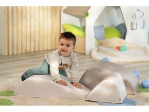 Kit BABImodules MINI Les Collines – Wesco : Cette gamme créée avec des psychomotriciens favorise l’apprentissage de la motricité globale et l’exploration sensorielle des enfants, en leur permettant d’évoluer au sol ou à faible hauteur en toute sécurité. Leur dimension réduite s’adapte aux petits espaces. Fabriqué en France et Oeko-Tex. PVC 145€