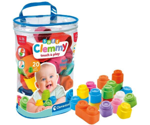 Cubes de construction – Clemmy : Un sac rempli de cubes de construction de toutes les couleurs. A empiler et à encastrer il est adapté dès 6 mois mais c’est à partir d’un an que bébé s’éclate ! Grâce à leur matière souple avec un toucher effet peau de pèche (soft touch) on ne craint rien ! Parfaits pour développer sa motricité, les mettre à la bouche sans risques, etc. PVC 21.99€