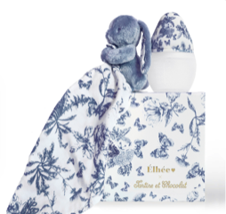 Elhée X Tartine et Chocolat : Coup de cœur pour ce coffret iconique au motif Toile de Jouy bleue tellement chic et raffiné. Il est composé d’un biberon 150 ml et Augustin le lapin, doudou doux et rassurant PVC 84€