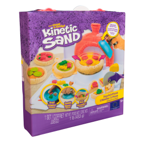 L’Atelier à Pizzas – Kinetic Sand : Pendant que les parents préparent la vraie, les petits passent aux fourneaux avec leur propre boîte à pizza. Ils choisissent leurs ingrédients, les râpent, les découpent, puis pressent leur pâte à l’aide de l’outil squishy pour la voir gonfler… comme une vraie ! Un vrai moment d’imitation autour de 4 couleurs de sable Kinetic Sand, avec râpe, roulette, moules à ingrédients et espace de jeu intégré dans la boîte – À partir de 5 ans. 24,99 €