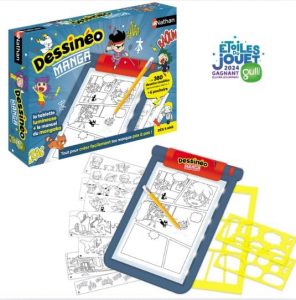 Dessinéo Manga – Nathan : Le succès du manga ne se dément pas en France : il séduit un lectorat toujours plus jeune et passionné, faisant de la bande dessinée japonaise un incontournable de la culture jeunesse. Dessinéo Manga initie les enfants dès 9 ans à la création de mangas à travers une tablette lumineuse et un matériel complet : des pochoirs pour cases et bulles, différentes planches de modèles et un guide dans lequel ils retrouveront des conseils et des inspirations d’un mangaka. Les jeunes apprennent ainsi à écrire un scénario, structurer une planche et dessiner personnages et décors. Une activité créative riche, dans l’univers manga, qui développe imagination, sens de la narration et expression graphique tout en s’amusant avec passion. A partir de 9 ans – 39.99€