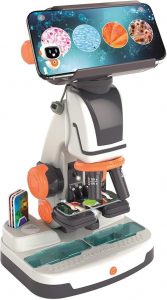 Microscope Digitale – Clémentoni : Comme un vrai scientifique, ce microscope 2 en 1 pour une observation analogique ou numérique permet de zoomer sur des feuilles, des insectes, des cristaux… mais aussi prendre des photos et observer les détails avec ses yeux ou en direct sur une tablette ou un smartphone. Grâce à l’IA, l’application dédiée fournira du contenu adapté aux intérêts de l’enfant. Facile à utiliser, sans fil et parfait pour éveiller la curiosité et initier la science au plus jeune âge. À partir de 8 ans – 64,90€